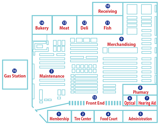 9つの部門(商品購買部、品質管理部、輸入部、倉庫店運営部 、人事・マーケティング部、財務経理部、情報システム部、不動産部、建設部)で構成されており、倉庫店運営サポートを行います。特に購買部では、仲介の卸業者を使わず直接国内外のサプライヤーと取引をして商品を選定しており、アメリカ本社の販売力や豊富なアイディアを活用しながら業務遂行しています。