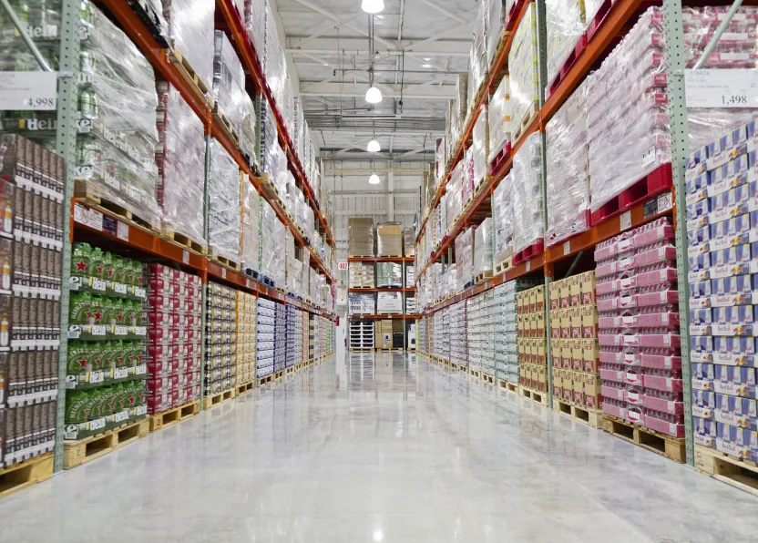 商品は入荷時のパレットのまま陳列。徹底した作業の効率化によりコストや人件費を抑え、高品質な商品をできる限りの低価格で会員様に継続して提供しています。